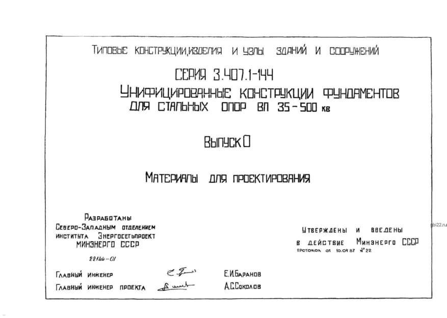 | Название стандарта | Унифицированные конструкции фундаментов для стальных опор ВЛ 35 - 500 кВ. |