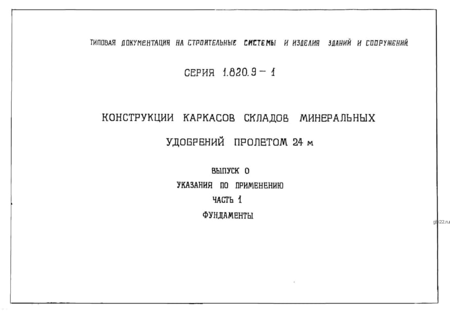 | Название стандарта | Конструкции каркасов складов минеральных удобрений пролетом 24 м. |