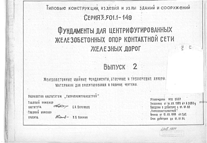 | Название стандарта | Фундаменты для центрифугированных железобетонных опор контактной сети железных дорог. |
