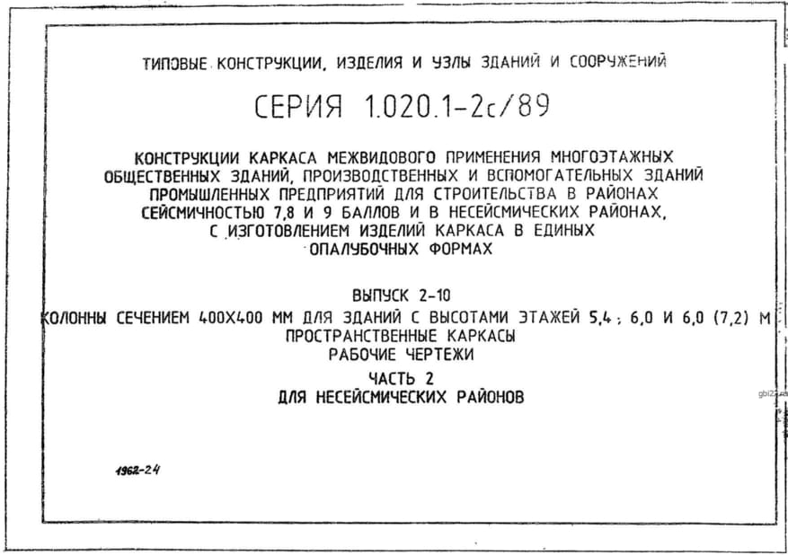 | Название стандарта | Конструкции каркаса межвидового применения многоэтажных общественных зданий, производственных и вспомогательных зданий промышленных предприятий для строительства в районах сейсмичностью 7, 8, 9 баллов и в несейсмических районах с изготовлением изделий кар |