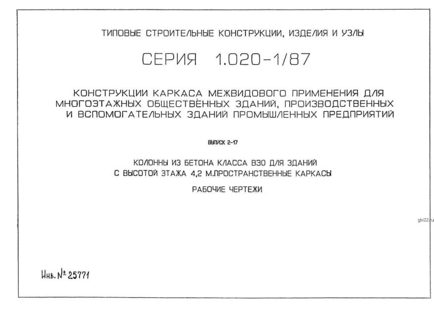| Название стандарта | Конструкции каркаса межвидового применения для многоэтажных общественных зданий, производственных и вспомогательных зданий промышленных предприятий. |