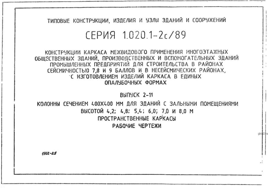 | Название стандарта | Конструкции каркаса межвидового применения многоэтажных общественных зданий, производственных и вспомогательных зданий промышленных предприятий для строительства в районах сейсмичностью 7, 8, 9 баллов и в несейсмических районах с изготовлением изделий кар |