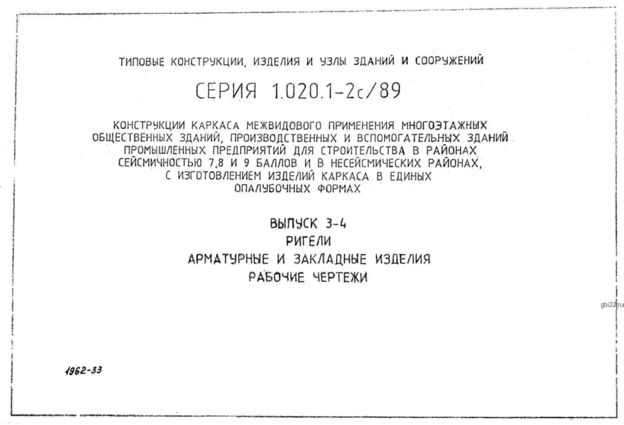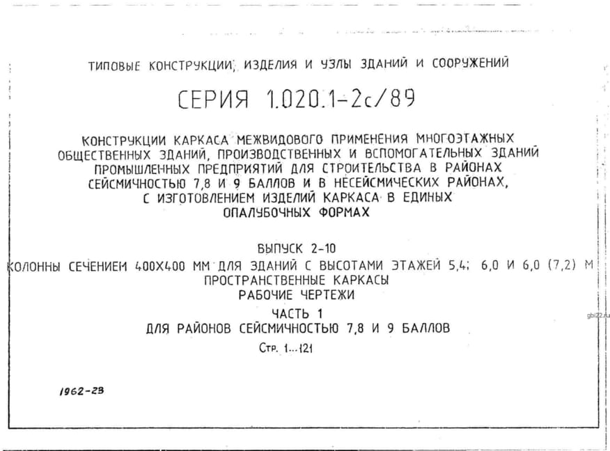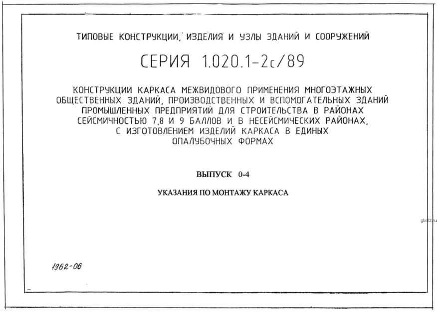| Название стандарта | Конструкции каркаса межвидового применения многоэтажных общественных зданий, производственных и вспомогательных зданий промышленных предприятий для строительства в районах сейсмичностью 7, 8, 9 баллов и в несейсмических районах с изготовлением изделий кар |