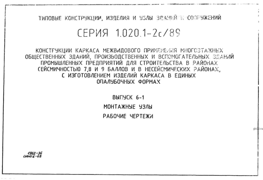 | Название стандарта | Конструкции каркаса межвидового применения многоэтажных общественных зданий, производственных и вспомогательных зданий промышленных предприятий для строительства в районах сейсмичностью 7, 8, 9 баллов и в несейсмических районах с изготовлением изделий кар |