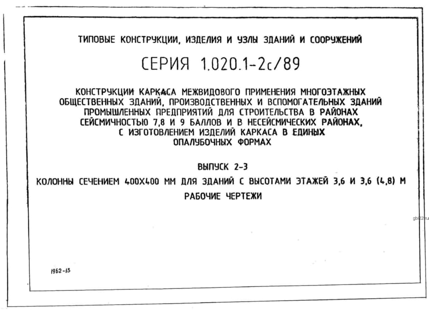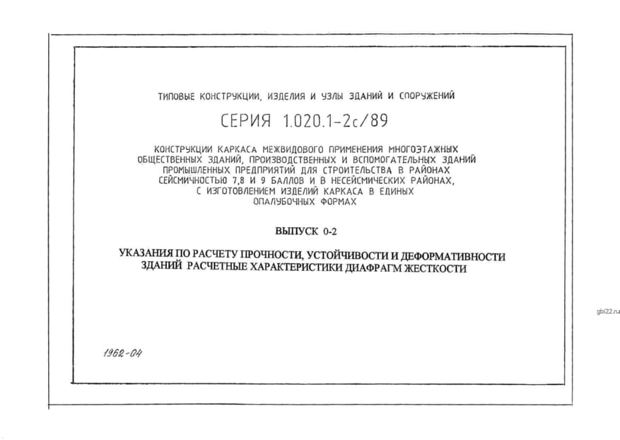 | Название стандарта | Конструкции каркаса межвидового применения многоэтажных общественных зданий, производственных и вспомогательных зданий промышленных предприятий для строительства в районах сейсмичностью 7, 8, 9 баллов и в несейсмических районах с изготовлением изделий кар |