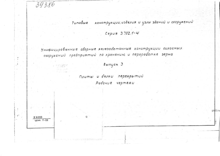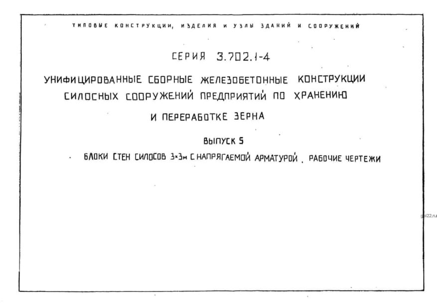 | Название стандарта | Унифицированные сборные железобетонные конструкции силосных сооружений предприятий по хранению и переработке зерна. |