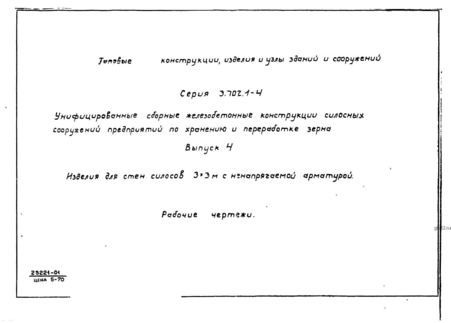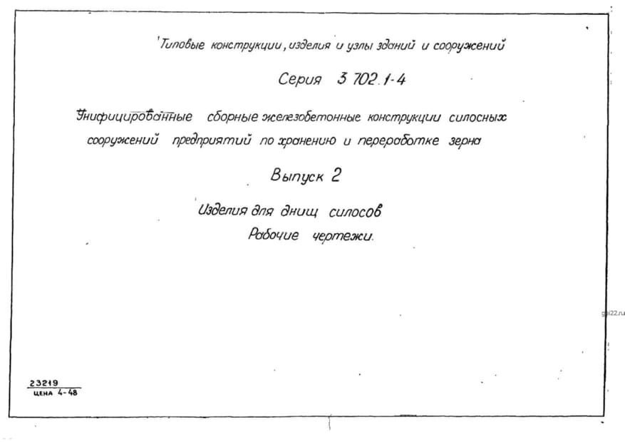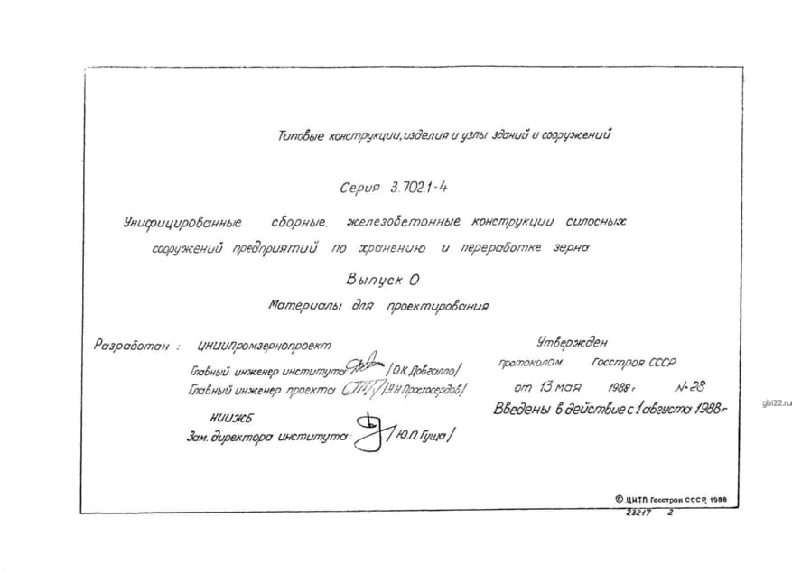 | Название стандарта | Унифицированные сборные железобетонные конструкции силосных сооружений предприятий по хранению и переработке зерна. |