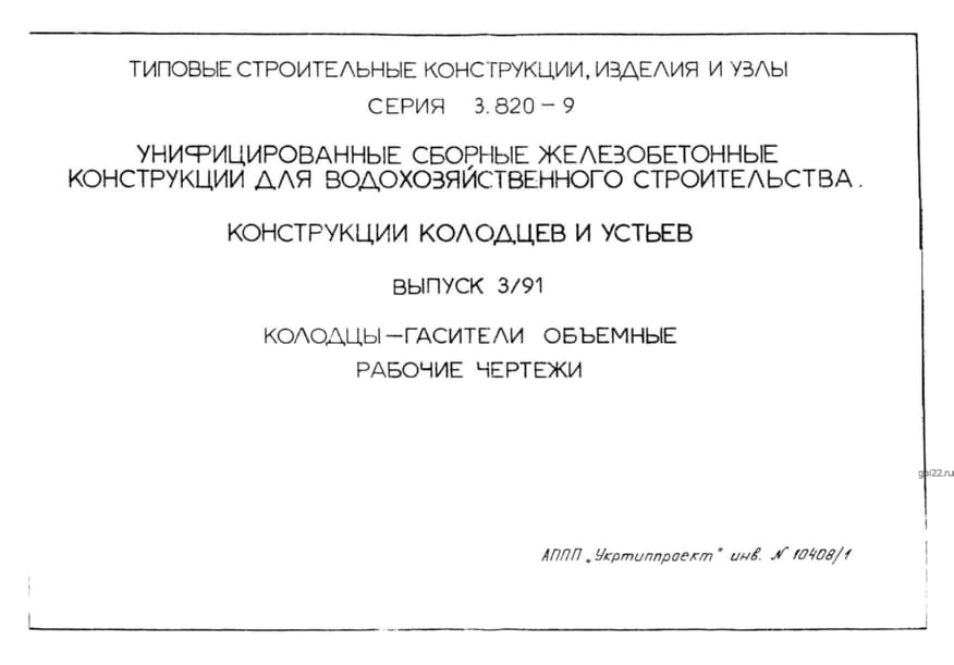 | Название стандарта | Унифицированные сборные железобетонные конструкции для водохозяйственного строительства. |