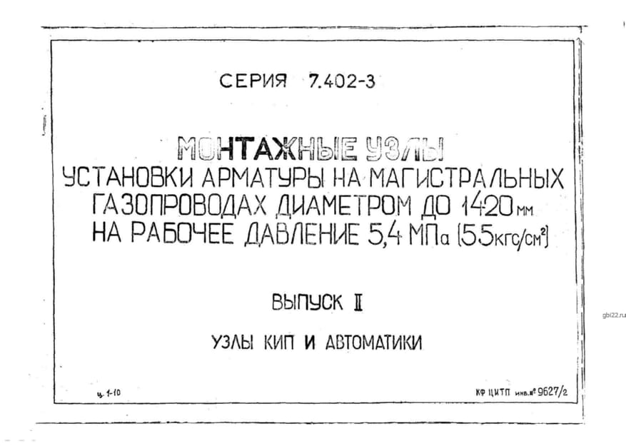 | Название стандарта | Установка арматуры на магистральных газопроводах диаметром до 1420мм на рабочее давление 5.4МПа. |
