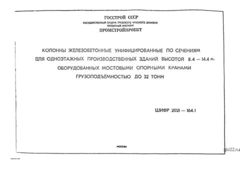 | Название стандарта | Колонны железобетонные унифицированные по сечениям для одноэтажных производственных зданий высотой 8,4 - 14,4 м, оборудованных мостовыми опорными кранами грузоподъемностью до 32 тонн. |