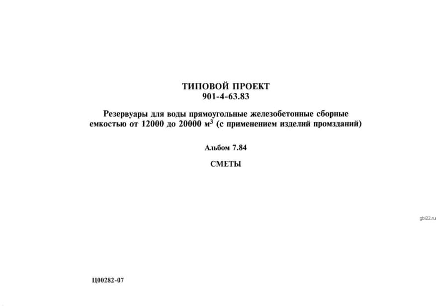 | Название стандарта | Резервуары для воды прямоугольные железобетонные сборные емкостью от 12000 до 20000 м3 (с применением изделий промзданий). |