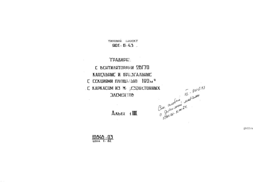 | Название стандарта | Градирня с вентиляторами 2ВГ70 капельные и брызгальные с секциями площадью 192 кв. м с каркасом из железобетонных элементов. |