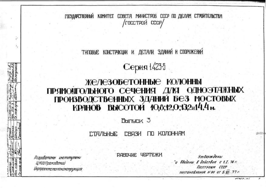 | Название стандарта | Железобетонные колонны прямоугольного сечения для одноэтажных производственных зданий без мостовых кранов высотой 10,8; 12,0; 13,2 и 14,4 м. |