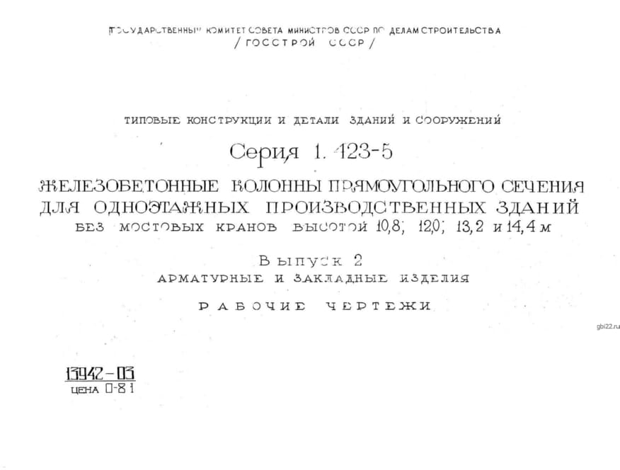 | Название стандарта | Железобетонные колонны прямоугольного сечения для одноэтажных производственных зданий без мостовых кранов высотой 10,8; 12,0; 13,2 и 14,4 м. |