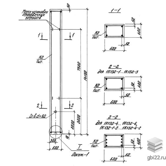 | Название стандарта | Железобетонные колонны прямоугольного сечения для одноэтажных производственных зданий без мостовых кранов высотой 10,8; 12,0; 13,2 и 14,4 м. |