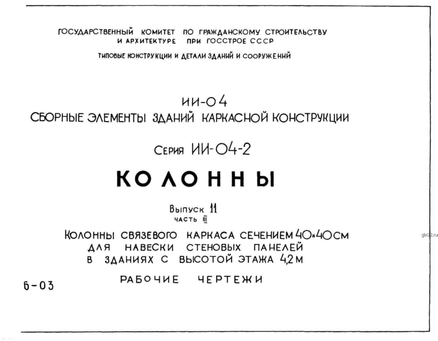 | Название стандарта | Сборные элементы зданий каркасной конструкции. Колонны. |