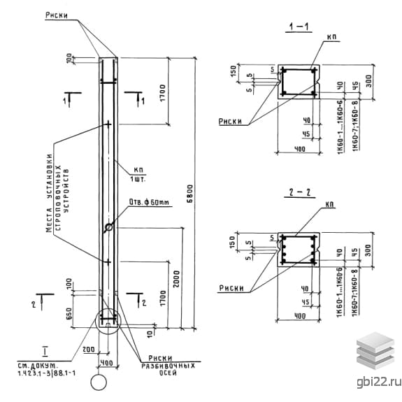 | Название стандарта | Железобетонные колонны прямоугольного сечения для одноэтажных производственных зданий без мостовых кранов высотой до 9,6 м. |