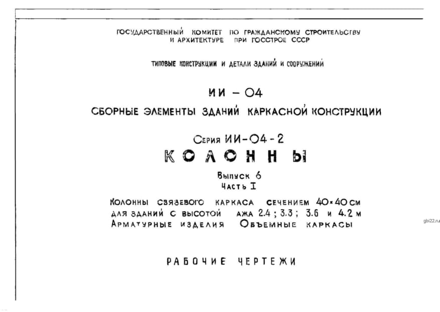 | Название стандарта | Сборные элементы зданий каркасной конструкции. Колонны. |