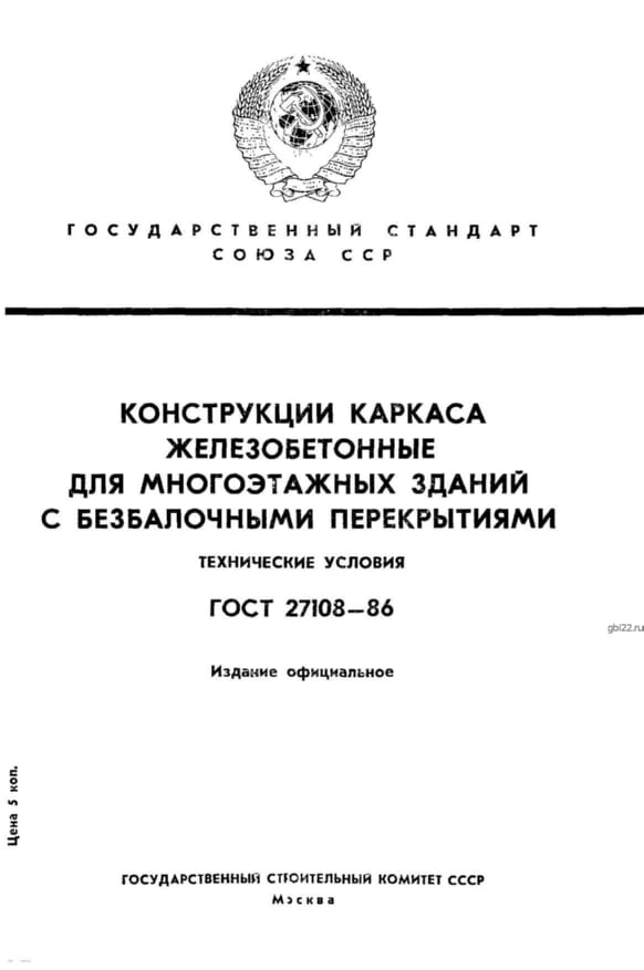 | Название стандарта | Конструкции каркаса железобетонные для многоэтажных зданий с безбалочными перекрытиями. Технические условия. |