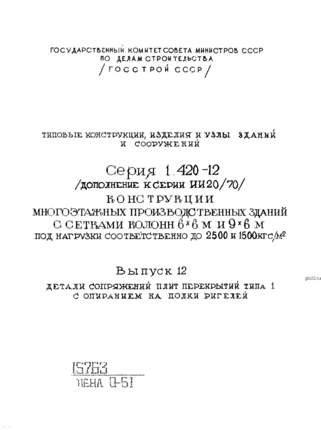 | Название стандарта | Конструкции многоэтажных производственных зданий с сетками колонн 6х6 и 9х6 м под нагрузки соответственно до 2500 и 1500 кгс/кв. м. |