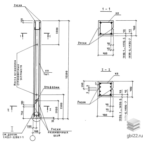 | Название стандарта | Железобетонные колонны прямоугольного сечения для одноэтажных производственных зданий без мостовых кранов высотой до 9,6 м. |