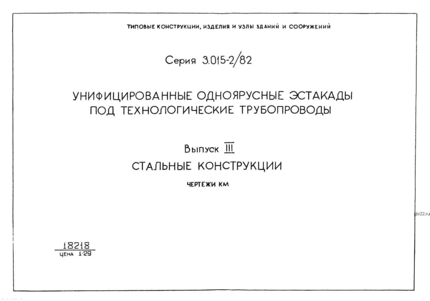 | Название стандарта | Унифицированные одноярусные эстакады под технологические трубопроводы. |
