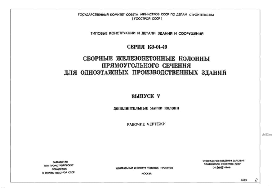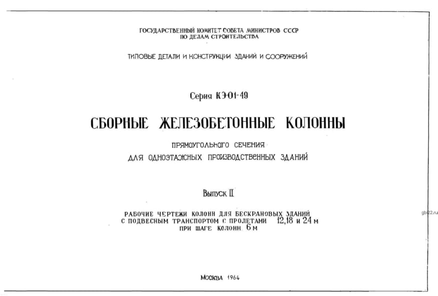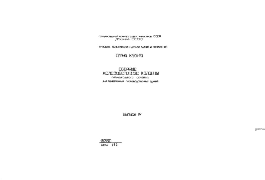 | Название стандарта | Сборные ж/б колонны прямоугольного сечения для 1-этажных производственных зданий зданий. |