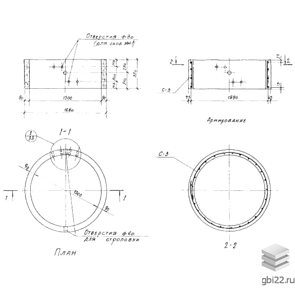 КС – стеновое кольцо рабочей камеры или горловины колодца;