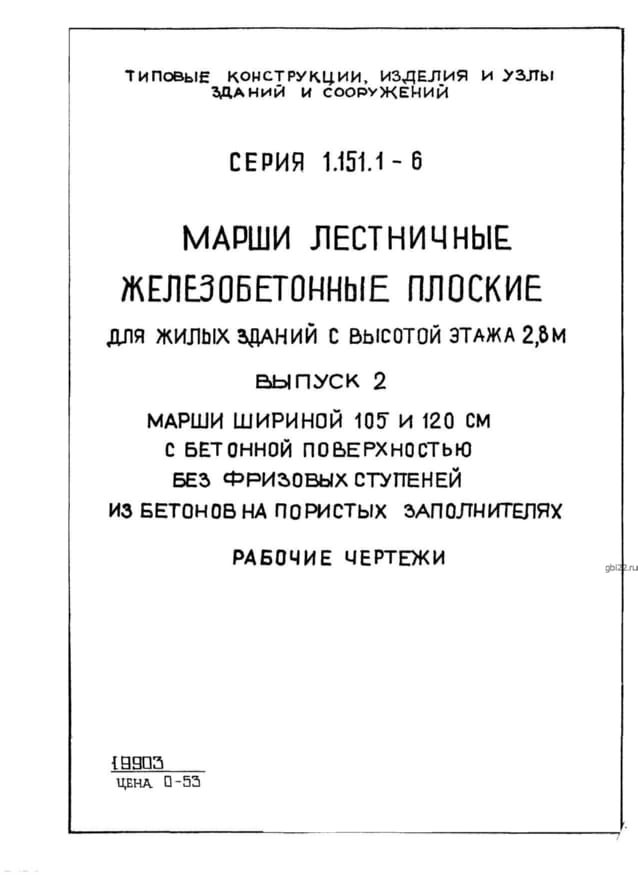| Название стандарта | Марши лестничные железобетонные плоские для жилых зданий с высотой этажа 2,8 м. |