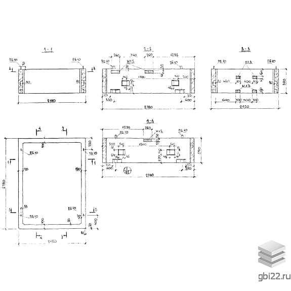 Армирование выполняется пространственными каркасами из стали Ст3кп (ГОСТ 380-94) с защитным слоем бетона 15 см.