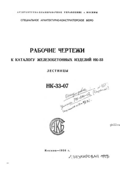 | Название стандарта | Рабочие чертежи к каталогу железобетонных изделий НК-33. Лестницы. |