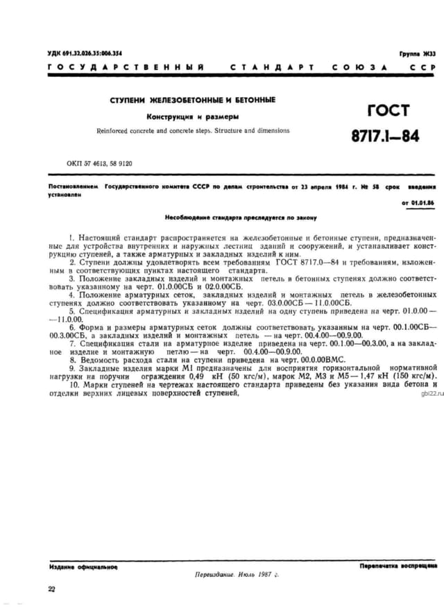 | Название стандарта | Ступени железобетонные и бетонные. Конструкция и размеры. |