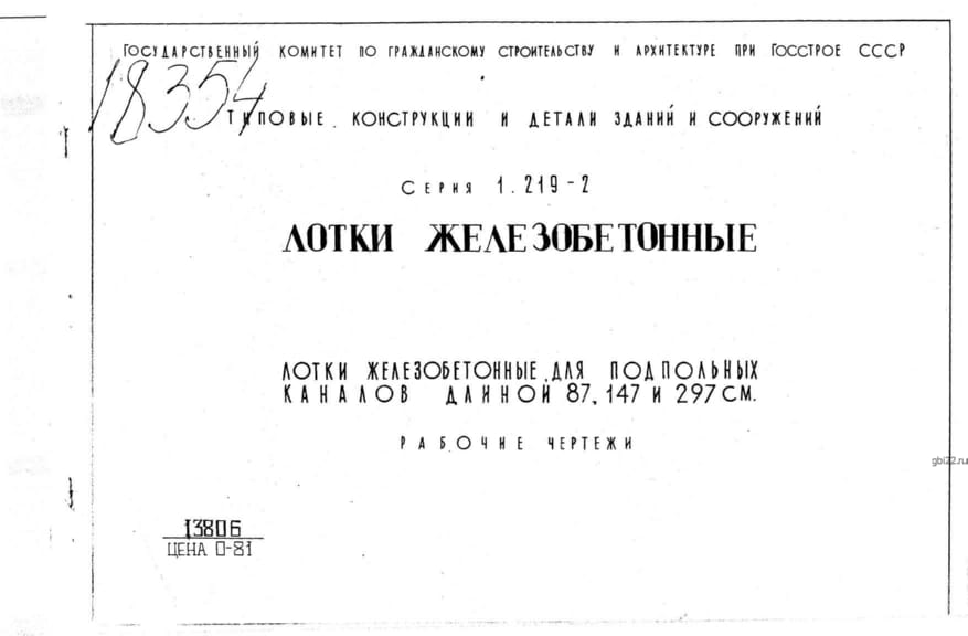 | Название стандарта | Лотки железобетонные для подпольных каналов длиной 87, 147 и 297 см. Рабочие чертежи. |