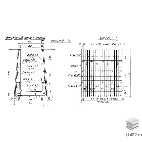 Лотки Л6 изготавливаются из бетона марки М200 с заполнителем из щебня фракцией до 20 мм. Конструкции армируются сварными каркасами из низкоуглеродистой проволоки (? 3–5,5 мм) по ГОСТ 6727-53.
