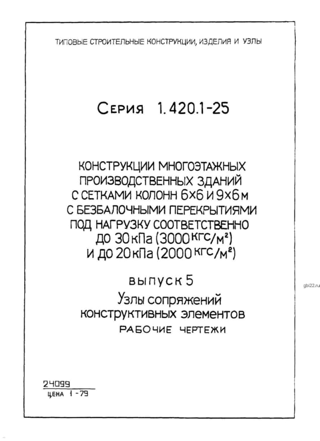 | Название стандарта | Конструкции многоэтажных производственных зданий с сетками колонн 6х6 и 9х6 м с безбалочными перекрытиями под нагрузку соответственно до 30 кПа (3000 кгс/кв.м) и до 20 кПа (2000 кгс/кв.м). |