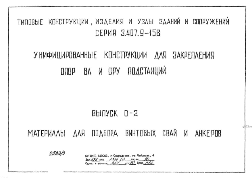 | Название стандарта | Унифицированные конструкции для закрепления опор ВЛ и ОРУ подстанций. |