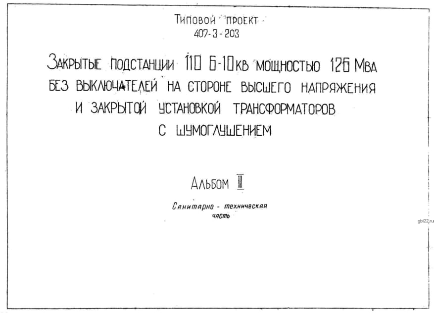 | Название стандарта | Закрытые подстанции 110/6 - 10 кВ мощностью 126 МВА без выключателей на стороне высшего напряжения и закрытой установкой трансформаторов с шумоглушением. |