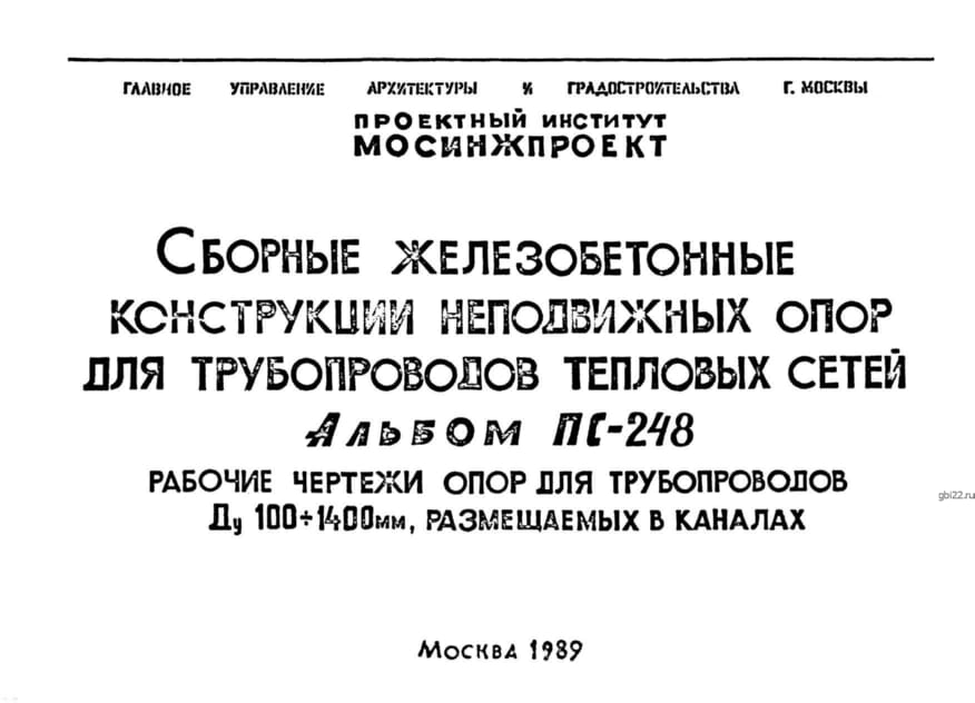 | Название стандарта | Сборные железобетонные конструкции неподвижных опор для трубопроводов тепловых сетей. Рабочие чертежи опор для трубопроводов Ду 100 - 1400 мм, размещаемых в каналах. |