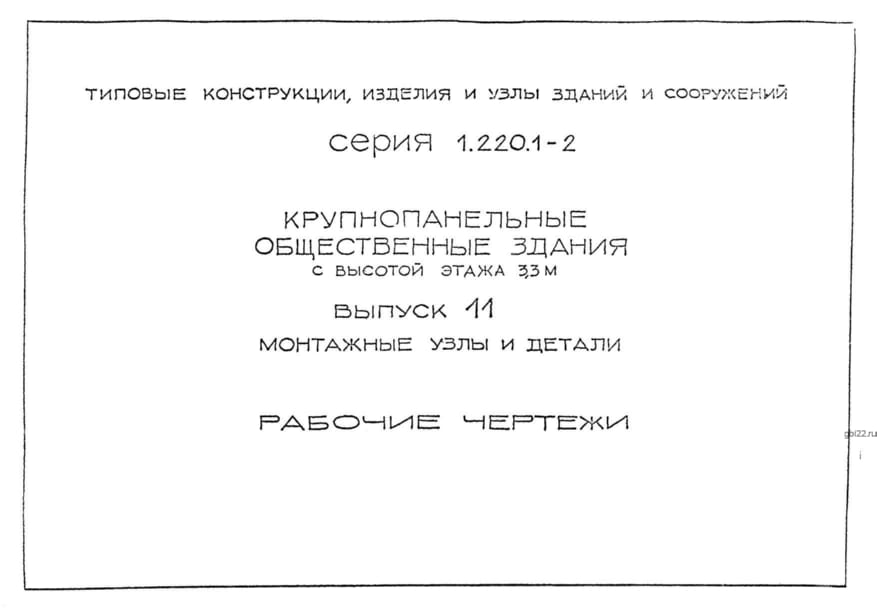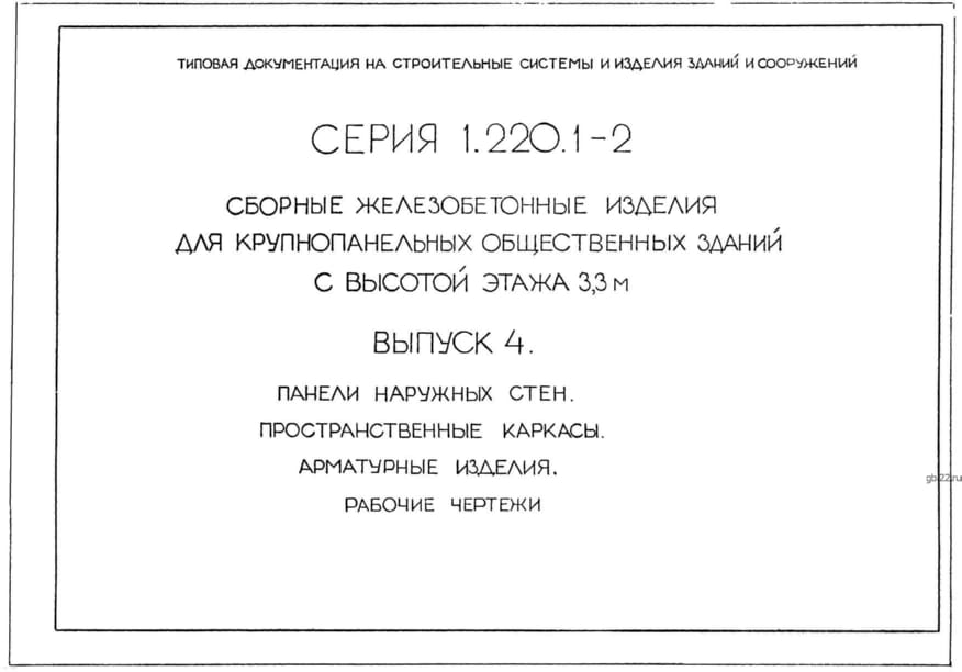 | Название стандарта | Сборные железобетонные изделия для крупнопанельных общественных зданий с высотой этажа 3,3 м. |