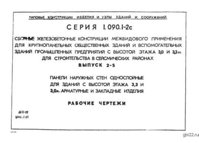 | Название стандарта | Сборные железобетонные конструкции межвидового применения для крупнопанельных общественных зданий и вспомогательных зданий промышленных предприятий с высотой этажа 3,0 и 3,3 м для строительства в сейсмических районах. |