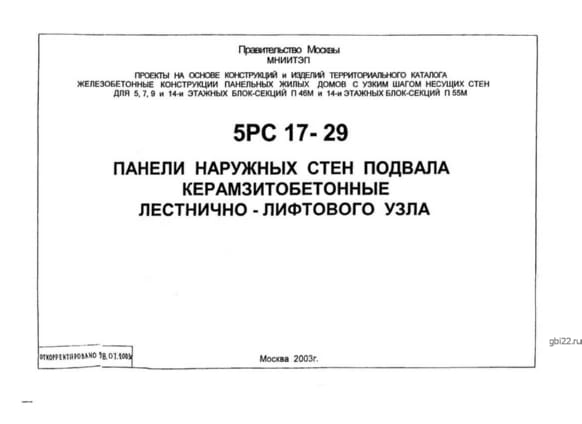 | Название стандарта | Панели наружных стен подвала керамзитобетонные лестнично-лифтового узла. |