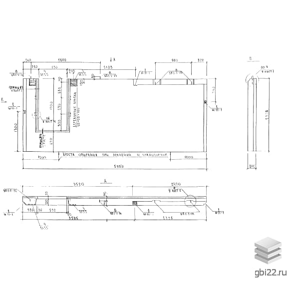 Железобетонные панели 5НВЦ 60-2 представляют собой прямоугольные плиты с технологическими выемками в верхней и нижней частях для надежного соединения с другими элементами здания.