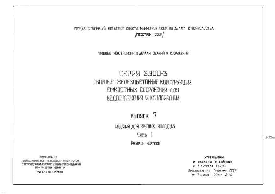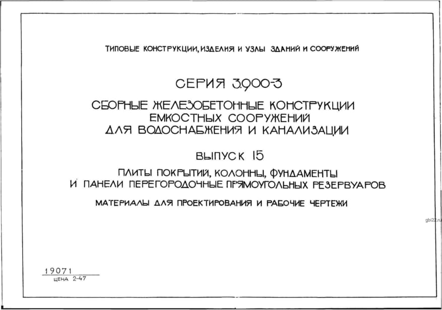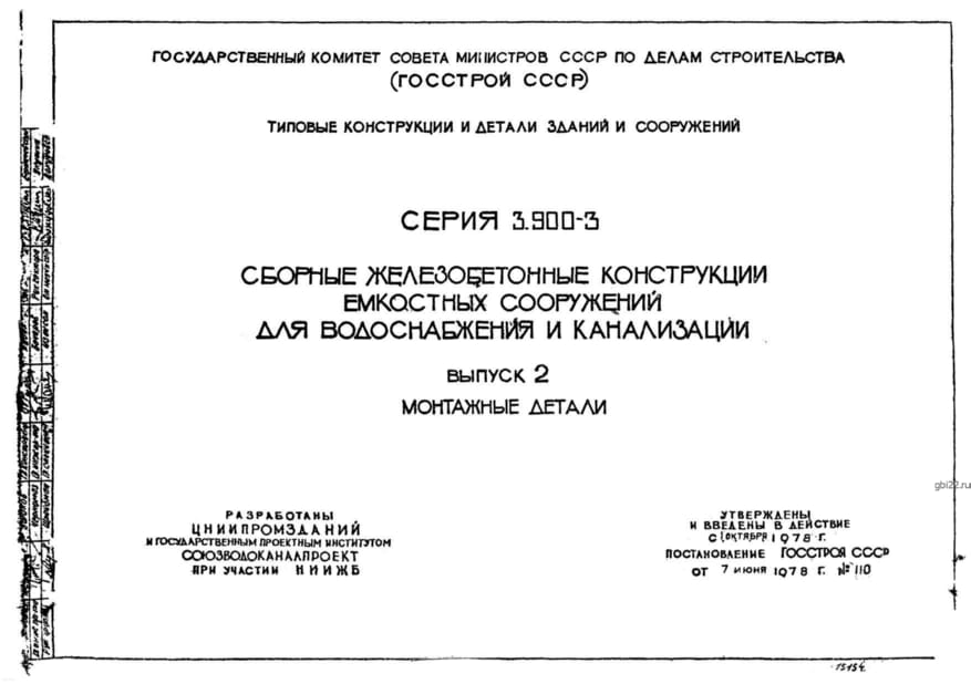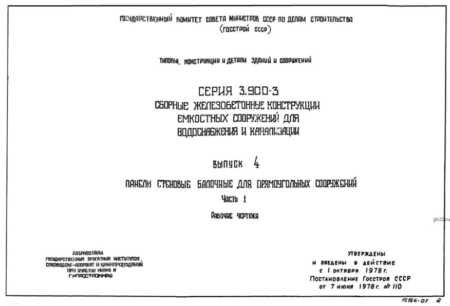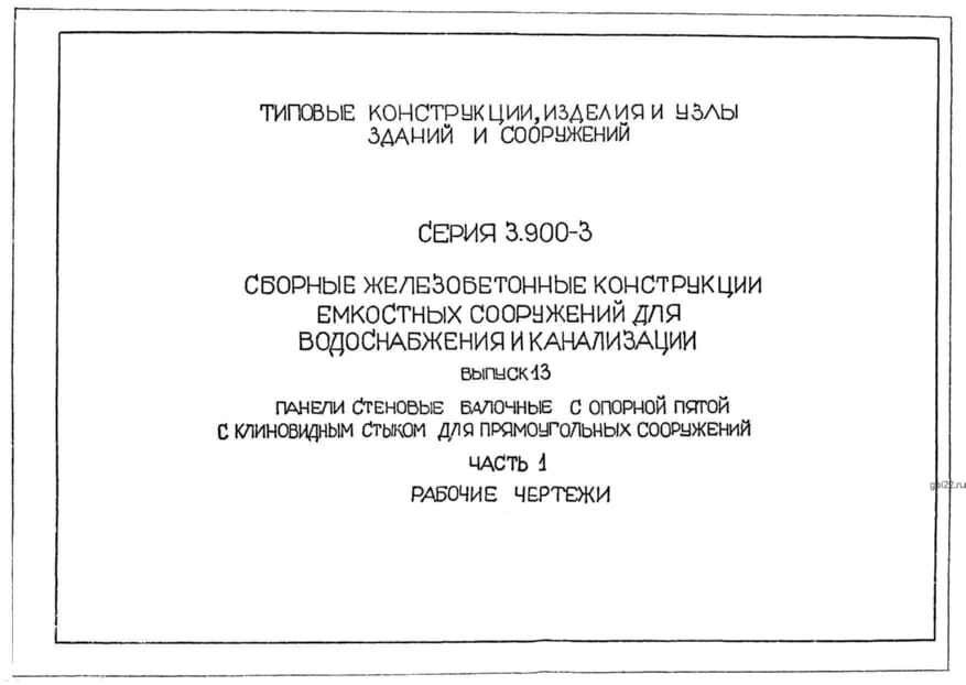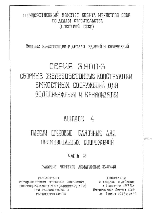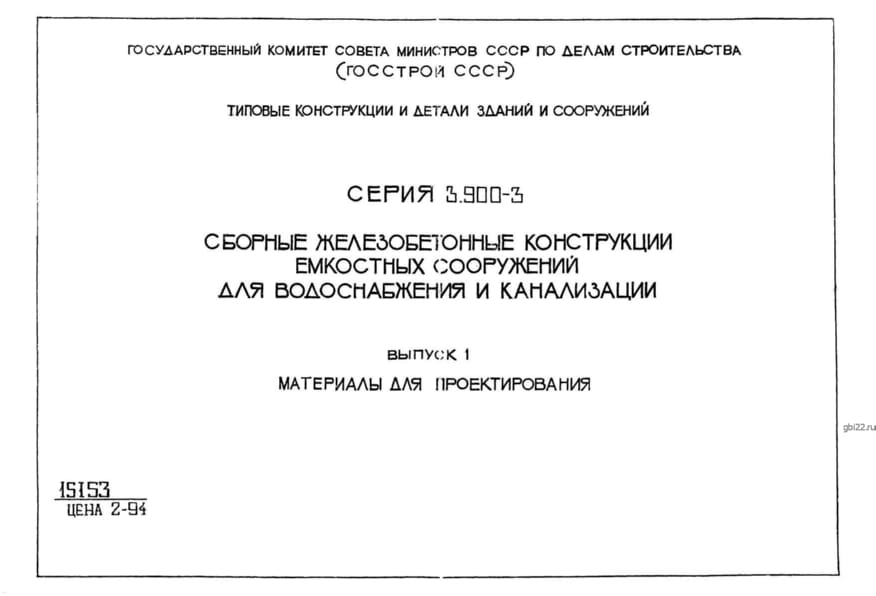 | Название стандарта | Сборные железобетонные конструкции емкостных сооружений для водоснабжения и канализации. |