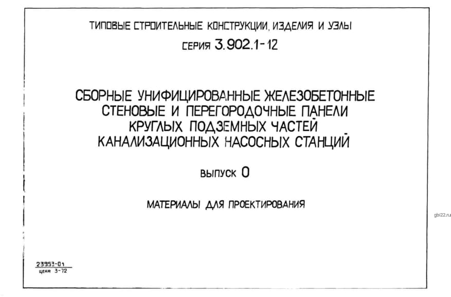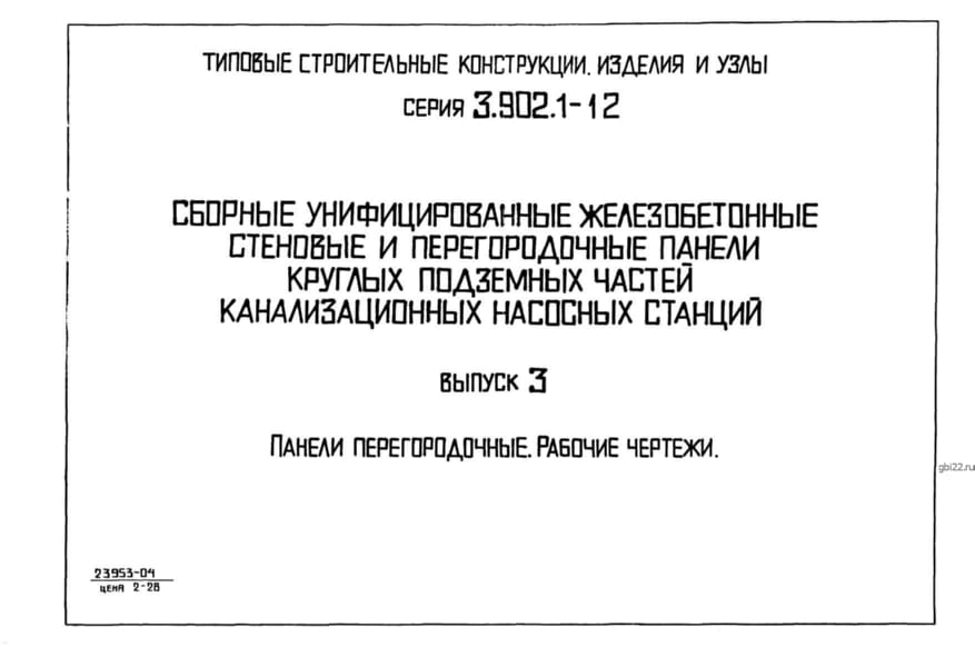 | Название стандарта | Сборные унифицированные железобетонные стеновые и перегородочные панели круглых подземных частей канализационных насосных станций. |