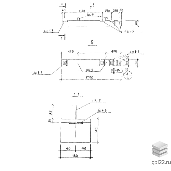 Плиты перекрытия П 18-1 у представляют собой прямоугольные элементы из тяжелого бетона класса B15 (М200). На продольных сторонах расположены трапециевидные пазы для строповочных петель, облегчающих монтаж. Закладные детали обеспечивают надежное соединение с другими конструкциями.