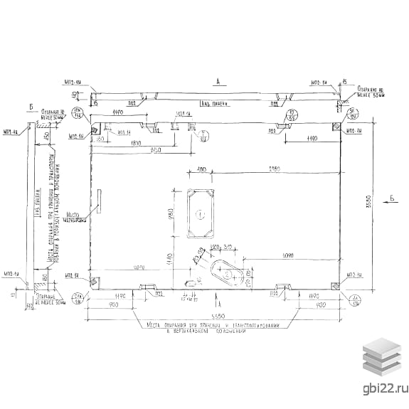 Панели перекрытия П 3654-5 — это стандартизированные строительные конструкции повышенной прочности. Изделия имеют прямоугольную конфигурацию с трапециевидными пазами на боковых гранях для удобства транспортировки и монтажа. В конструкции предусмотрены монтажные петли и закладные элементы для надежного соединения с другими компонентами здания.