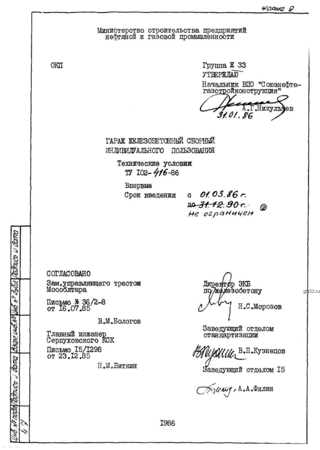 | Название стандарта | Гараж железобетонный сборный индивидуального пользования. |