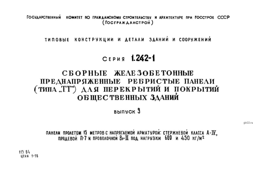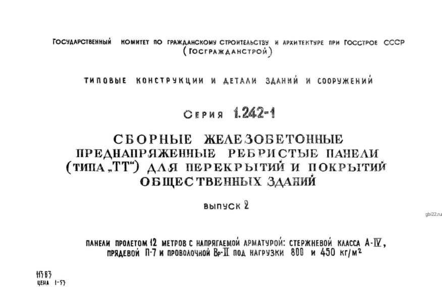 | Название стандарта | Сборные железобетонные преднапряженные ребристые панели (типа "ТТ") для перекрытий и покрытий общественных зданий. |