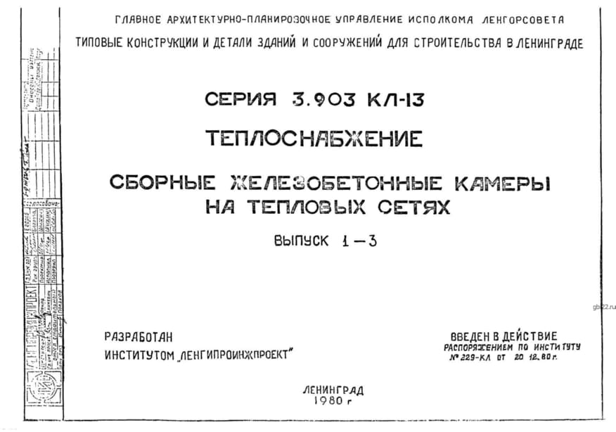 | Название стандарта | Теплоснабжение. Сборные железобетонные камеры на тепловых сетях. |