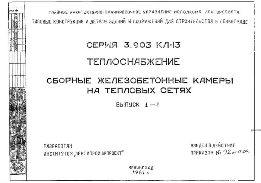 | Название стандарта | Теплоснабжение. Сборные железобетонные камеры на тепловых сетях. |